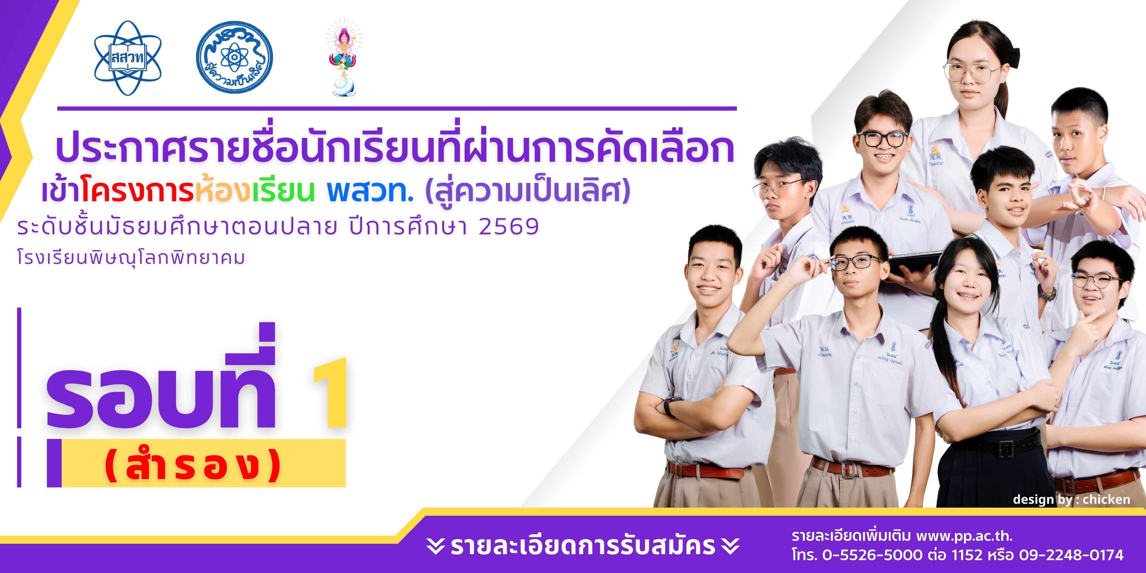 การรับสมัครคัดเลือกเข้าโครงการห้องเรียน พสวท. (สู่ความเป็นเลิศ) ศูนย์โรงเรียนพิษณุโลกพิทยาคม ปีการศึกษา 2569