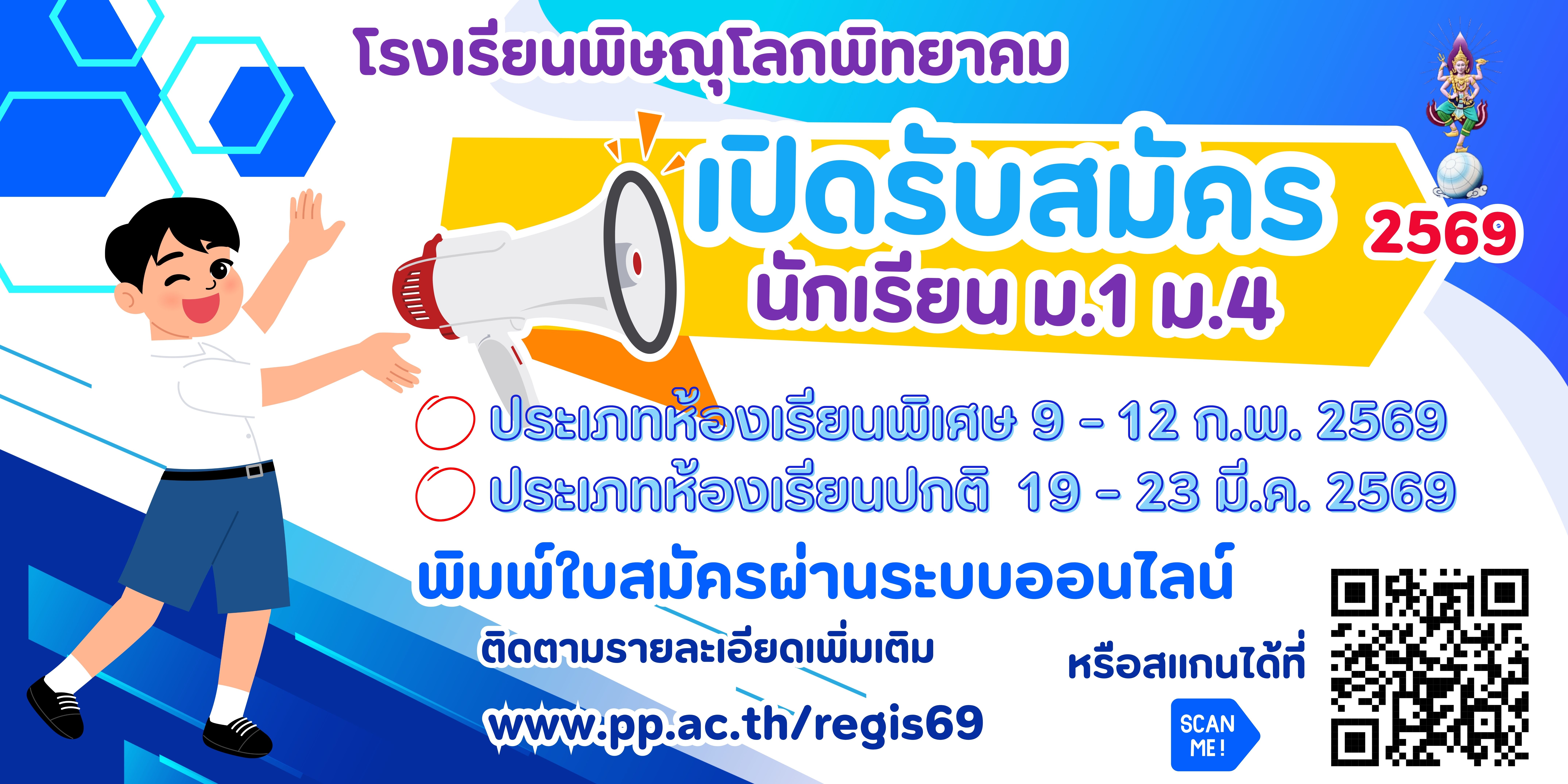 กำหนดการรับสมัครนักเรียนเข้าศึกษาต่อ ชั้นมัธยมศึกษาปีที่ ๑ และชั้นมัธยมศึกษาปีที่ ๔ ปีการศึกษา ๒๕๖๙